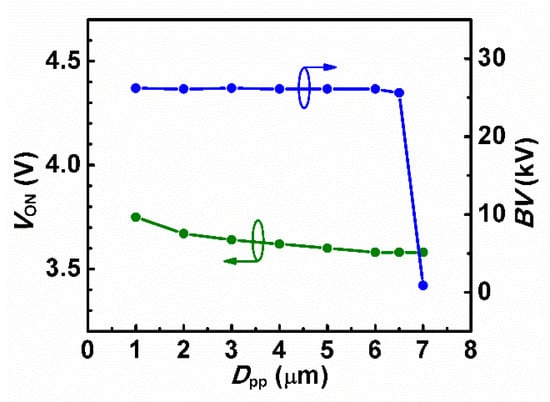 The influence of distance between the p-body and the buried p-layer (Dpp) on VON and BV for the proposed BP-IGBT.