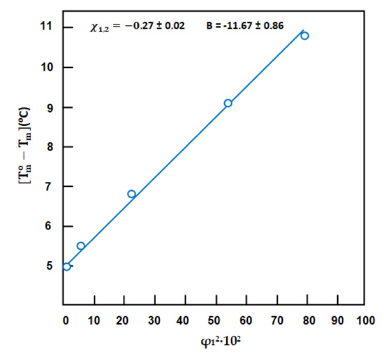 The decrease of the melting temperature in a semi-crystalline polymer in a miscible blend is due to the thermodynamic interactions between its components. Indeed, the Flory–Huggins theory stipulates that a miscible blend containing a semi crystalline polymer is principally characterized by a depression in its melting temperature permitting the determination of interaction energy. In this same direction, the melting temperature of such polymer is principally affected by different thermodynamic parameters and also by its crystal thickness. In this same way, Hoffman–Weeks method permits the isolation of the morphology parameters from the undesired effects that act on the melting temperature of semi-crystalline polymer in its miscible blend using the equilibrium melting temperature,, expressed by Equation (3) [50]: