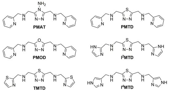 Ligand synthesis: 1,2-Bis(chloroacetyl)hydrazine, 2,5-bis(chloromethyl)-1,3,4-thiadiazole, 2,5-bis(azidomethyl)-1,3,4-thiadiazole and 2,5-bis(aminomethyl)-1,3,4-thiadiazole (1) were prepared according to literature-known procedures [,]. The ligand (I4MTD = 2,5-Bis{[(1H-imidazol-4-ylmethyl)amino]methyl}-1,3,4-thiadiazole) was synthesized based on similar reductive amination recently published by us [].