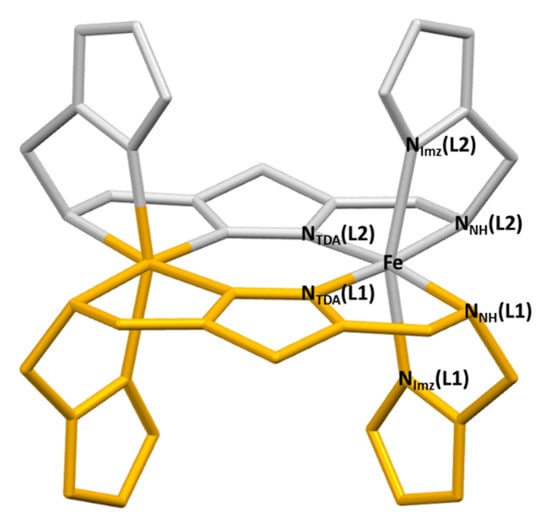 - Matouzenko, G.S.; Jeanneau, E.; Verat, A.Y.; de Gaetano, Y. The Nature of Spin Crossover and Coordination Core Distortion in a Family of Binuclear Iron(II) Complexes with Bipyridyl-Like Bridging Ligands. Eur. J. Inorg. Chem. 2012, 2012, 969–977. [Google Scholar] [CrossRef]