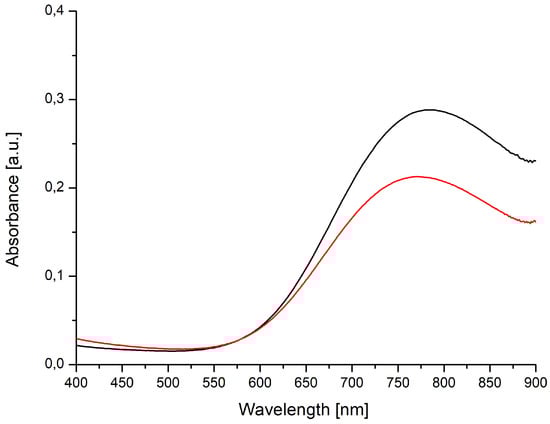 Vis spectra of 2b (black) and copper(II)-acetate (red); c = 1 mmol L−1.