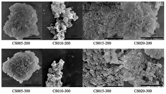 SEM images of CS005-200, CS010-200, CS015-200, CS020-200, CS005-300, CS010-300, CS015-300, CS020-300.