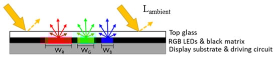 - Huang, Y.; Tan, G.; Gou, F.; Li, M.C.; Lee, S.L.; Wu, S.T. Prospects and challenges of mini-LED and micro-LED displays. J. Soc. Inf. Disp. 2019, 27, 387–401. [Google Scholar] [CrossRef]