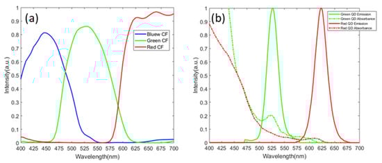 - Chen, H.; He, J.; Wu, S.T. Recent advances in quantum-dot-enhanced liquid crystal displays. IEEE J. Sel. Topics Quantum Electron. 2017, 23, 1900611. [Google Scholar] [CrossRef]