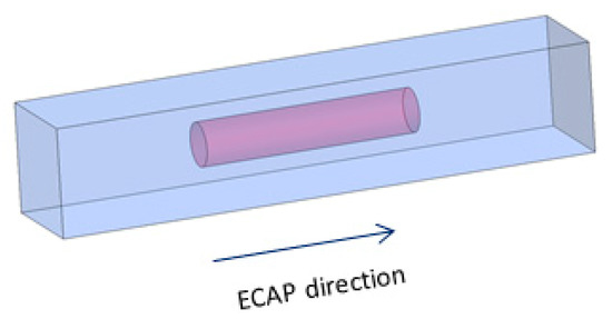 The AX52 magnesium alloy (nominal composition 5wt.% Al, 2wt.%Ca, balance Mg) was prepared with squeeze cast technology. Billets with dimensions of 10 × 10 × 100 mm3 were cut from castings and submitted to annealing at 390 °C for 22 h. These semi-finished products were pressed through a rectangular channel of 10 × 10 mm2 (inner angle Φ = 90° outer curvature Ψ = 0°) at the temperature of 250 °C and using a cross-head speed of 10 mm/min. The material was subjected to 1, 2, 4, and 8 passes through the ECAP tool and the samples are hereafter depicted as 1P, 2P, 4P, and 8P, respectively. According to the literature data, route A was chosen [30].