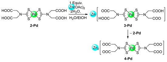 Formation and assumed disproportionation of Zn[Pd(HL)2] (3-Pd).