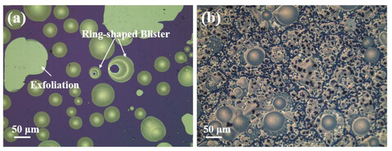 - Daghbouj, N.; Li, B.S.; Karlik, M.; Declemy, A. 6H-SiC blistering efficiency as a function of the hydrogen implantation fluence. Appl. Surf. Sci. 2019, 466, 141–150. [Google Scholar] [CrossRef]