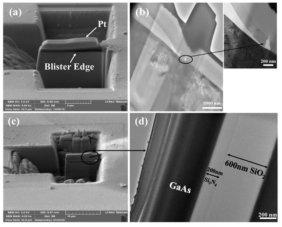 Huang, R.; Lan, T.; Li, C.; Li, J.; Wang, Z. Investigation of the Blistering and Exfoliation Mechanism of GaAs Wafers and SiO2/Si3N4/GaAs Wafers by He+ and H+ Implantation. Crystals 2020, 10, 520. https://doi.org/10.3390/cryst10060520