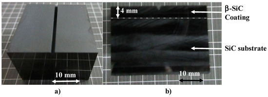 SiC-coated SiC die with a triangular cavity on its surface. (a) Perspective view and (b) side view.