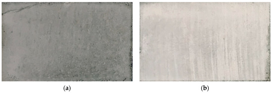 The QM mixture was prepared using a laboratory planetary mixer with a 20 L capacity. The mixing process for QM can be found in Lee et al. [4]. The digital image correlation (DIC) method was adopted in this research to characterize the interfacial crack. Random speckles were applied on the surface of IFT samples for the DIC analysis, and Figure 4 shows the prepared IFT samples before and after the stone spray application.