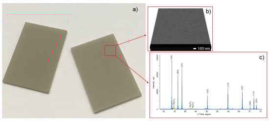 The object of the study was polycrystalline ceramics based on aluminum nitride (AlN) (see Figure 1a,b) with a hexagonal-type crystal structure and three main texture orientations: (100), (002), and (101). According to the method of production by sintering ceramics in an atmosphere of nitrogen (N2) (P = 760 mmHg) from alumina powders: