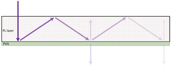 Schematic illustration of a photoluminescent enhancement film based on PVGs.