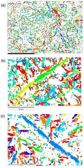 - Cayron, C. EBSD imaging of orientation relationships and variants groupings in different martensitic alloys and Widmanstätten iron meteorites. Mater. Charac. 2014, 94, 93–110. [Google Scholar] [CrossRef]