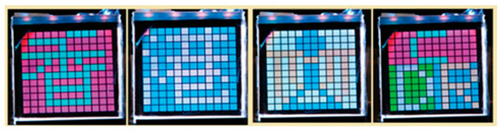 Prototypes of the field sequential color display (12 × 12 pixels), based on the RSPESHFLCs.