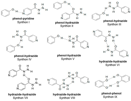 Supramolecular synthons found in the isoniazid-polyphenol cocrystals.