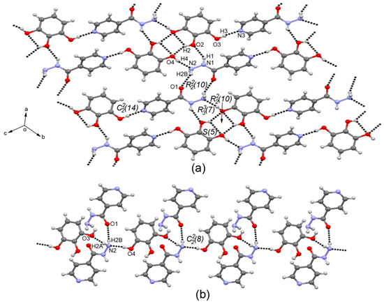 Isoniazid is used as an anti-tuberculosis drug [5]; however, its irrational use has led to the development of bacterial resistance [6]. Its chemical structure possesses pyridine and hydrazide functional groups capable of forming hydrogen bonds, leading to the formation of supramolecular homosynthons (hydrazide-hydrazide) and heterosynthons (acid-pyridine, hydroxyl-pyridine, amide-amide, hydroxyl-amide). Cocrystals of isoniazid have been prepared using nicotinamide, dicarboxylic acids, and hydroxybenzoic acids as coformers [7,8,9,10].