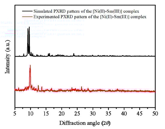 Comparing the simulated PXRD and experimental patterns of the [Ni(II)-Sm(III)] coordination polymer.
