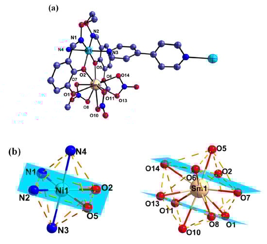 The structure of the heterobimetallic [Ni(II)-Sm(III)] salamo-based coordination polymer is depicted in Figure 3, complemented by data in Table 2.