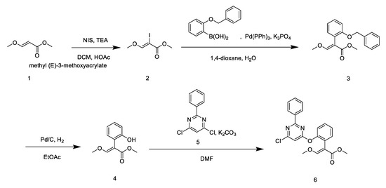 2.2.4. Methyl (E)-2-{2-[(6-chloro-2-phenylpyrimidin-4-yl)oxy]phenyl}-3-methoxyacrylate (6)