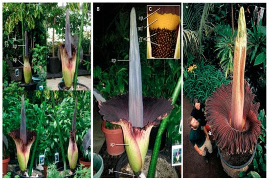 - Barthlott, W.; Szarzynski, J.; Vlek, P.; Lobin, W.; Korotkova, N. A torch in the rain forest: Thermogenesis of the Titan arum (Amorphophallus titanum). Plant Biol. (Stuttg.) 2009, 11, 499–505. [Google Scholar] [CrossRef] [PubMed]
