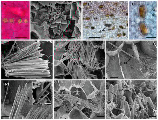 - Hartl, W.P.; Klapper, H.; Barbier, B.; Ensikat, H.J.; Dronskowski, R.; Müller, P.; Ostendorp, G.; Tye, A.; Bauer, R.; Barthlott, W. Diversity of calcium oxalate crystals in Cactaceae. Can. J. Bot. 2007, 85, 501–517. [Google Scholar] [CrossRef]