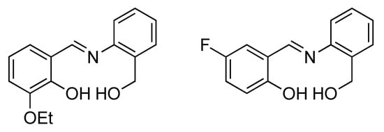 - Liu, X.; Hamon, J.-R. Recent developments in penta-, hexa- and heptadentate Schiff base ligands and their metal complexes. Coord. Chem. Rev. 2019, 389, 94–118. [Google Scholar] [CrossRef]
