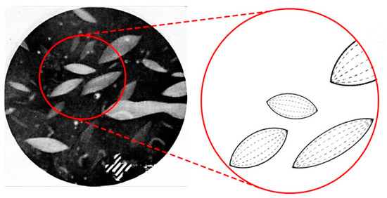Formation of nematic tactoids in a preparation of vanadium pentoxide, V2O5 (reproduced with permission from Reference [24]), and corresponding needle crystallite orientation within some tactoids.