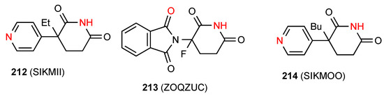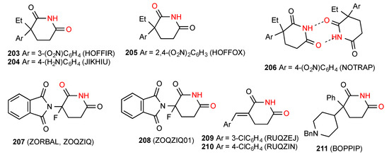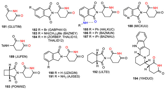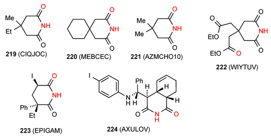 - Petersen, C.S. The Crystal Structure of Glutarimide. Acta Chem. Scand. 1971, 25, 379. [Google Scholar] [CrossRef]