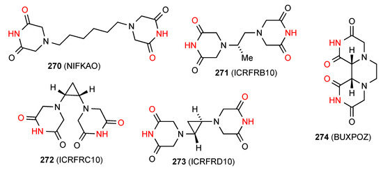 - Jia, J.-J.; Meng, X.-J.; Liang, S.-Z.; Zhang, S.-H.; Jiang, Y.-M. Piperazine-2,3,5,6-tetraone, Acta Crystallogr. Sect. E 2010, 66, o3315. [Google Scholar] [CrossRef]