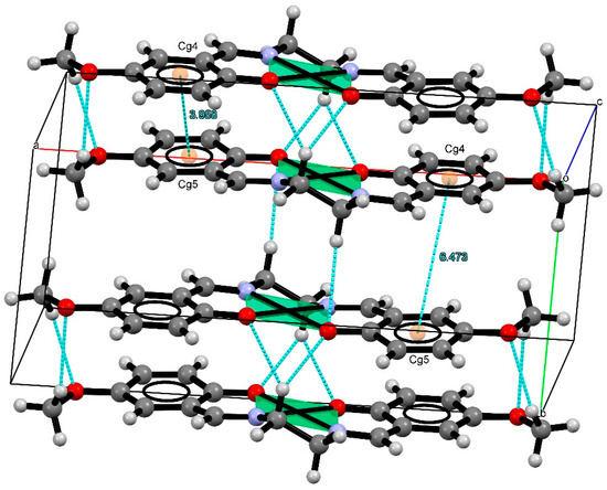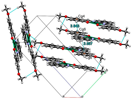 In the crystal packing, there were C-H∙∙∙O no classic hydrogen bonds and π∙∙∙π intermolecular contacts (Figure 6).