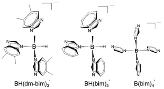 All BIF materials contain the ultra-lightweight element B constituting a strong covalent bond (B-N) in the three- or four-connected boron imidazolate ligands (Scheme 2). These distinct features of the boron imidazolate frameworks assist to their rational design for the specific task. Note that the use of B3+ as the framework polyhedral node is very attractive from practical point of view because boron is one of the lightest elements allowing to decrease the density of the produced BIF matrix [36]. For instance, some BIF materials, namely lithium–boron imidazolates, are regarded as promising materials designated for hydrogen storage.