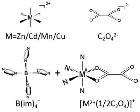 Self-assembly of neutral BIF structures using B(im)4− and [M2+(1/2C2O42−)]+ building blocks. Reprinted with permission from [49].
