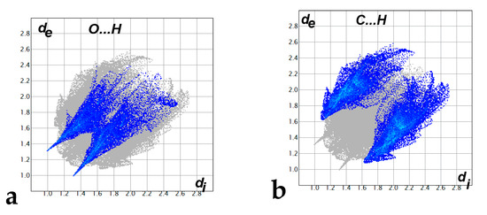 The decomposed fingerprint plots of the strong O...H (a) and weak C…H (b) contacts.