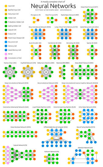 - Leijnen, S.; Van Veen, F. The Neural Network Zoo. Proceedings 2020, 47, 9. [Google Scholar] [CrossRef]