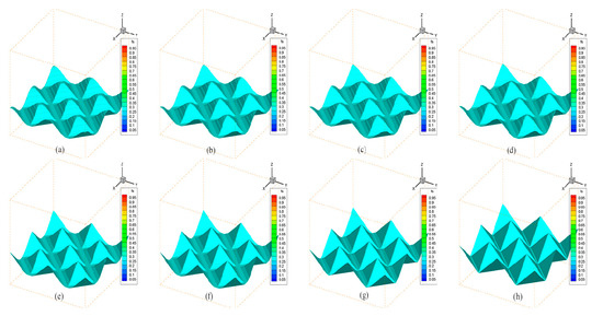 Growth morphology of solid phase ratio of each 200 time steps: (a–h).