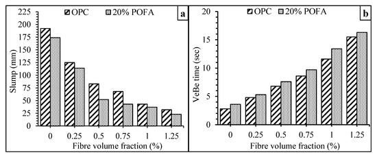 Effects of WMP fibres on (a) slump and (b) VeBe time values.