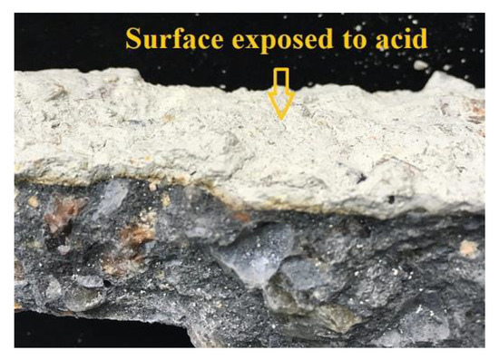 Cross-section of concrete specimen exposed to H2SO4 solution.