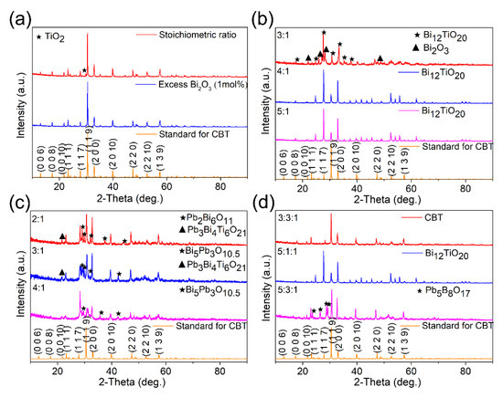 - Yan, H.X.; Li, C.E.; Zhou, J.G.; Zhu, W.M.; He, L.X.; Song, Y.X.; Yu, Y.H. Effects of A-Site (NaCe) Substitution with Na-Deficiency on Structures and Properties of CaBi4Ti4O15-Based High-Curie-Temperature Ceramics. Jpn. J. Appl. Phys. 2001, 40, 6501–6505. [Google Scholar] [CrossRef]