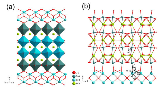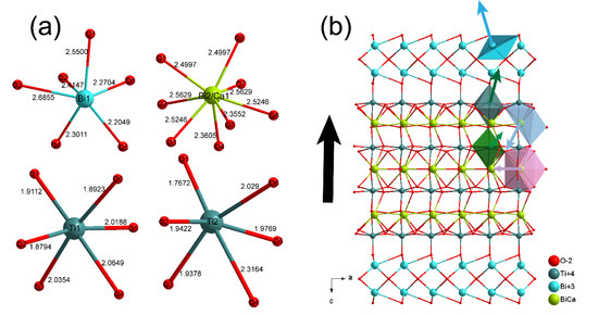 - Tanwar, A.; Sreenivas, K.; Gupta, V. Effect of Orthorhombic Distortion on Dielectric and Piezoelectric Properties of CaBi4Ti4O15 Ceramics. J. Appl. Phys. 2009, 105, 084105. [Google Scholar] [CrossRef]