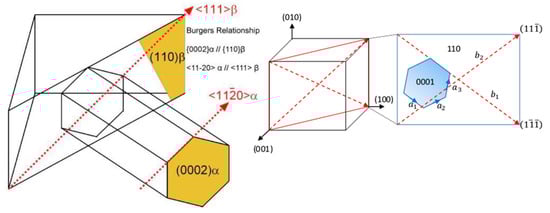 Figure 1, the perfectly aligned directions of the bcc and hcp phases are <a