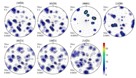 , were plotted and presented in the form of pole figures (PFs). The intensities were visualised in terms of contours and colours and were expressed as multiple unit density (MUD).
