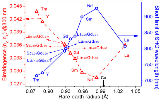 - Liu, Y.; Yu, F.; Wang, Z.; Yang, X.; Han, S.; Xu, X.; Zhao, X. Anisotropy of nonlinear optical properties in monoclinic SmxY1−xCa4O(BO3)3 crystals. J. Alloys Compd. 2018, 762, 431–437. [Google Scholar] [CrossRef]