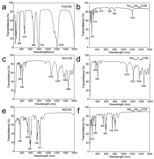 | TmxGd1−xCOB | Y | 716~826 | 730~826 358~374 | - | 1011~1255 | 1022~1255 | 1011~1022 |