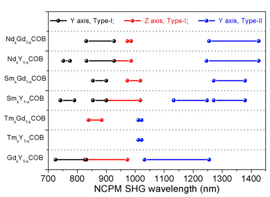 Li, R.; Qi, H.; Liu, Y.; Yu, F.; Yu, P.; Wang, Z.; Xu, X.; Zhao, X. Widely Tunable Angular Non-Critical Phase-Matching Wavelengths from 0.72 to 1.42 μm Based on RE1xRE21−xCOB Mixed Crystals. Crystals 2020, 10, 744. https://doi.org/10.3390/cryst10090744