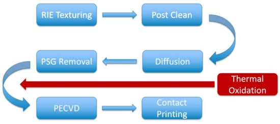 Figure 3. The manufacturing process of the c-Si PV cell and the addition location of thermal oxygen.