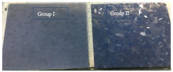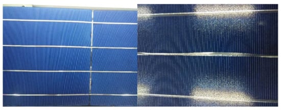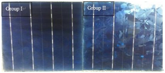 The differences between the two comparison groups were obtained through the first experiment. After pre-cleaning, the appearance difference of the two groups of silicon wafers is shown in Figure 5. Additionally, the appearance difference of the two groups of cells after contact printing is shown in Figure 6. In the experiment, the electrical performances of the two groups of cells, such as open-circuit voltage (Uoc), Isc, short-circuit current density (Jsc), filling factor (FF), and Eff, were measured. The results are shown in Table 3. The standard deviation of the cells Jsc of each group of samples is shown in Figure 7.