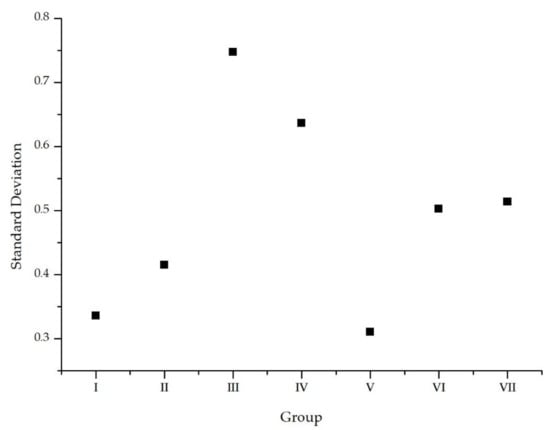 Figure 12. The standard deviation of the output power of the modules of the seven groups.