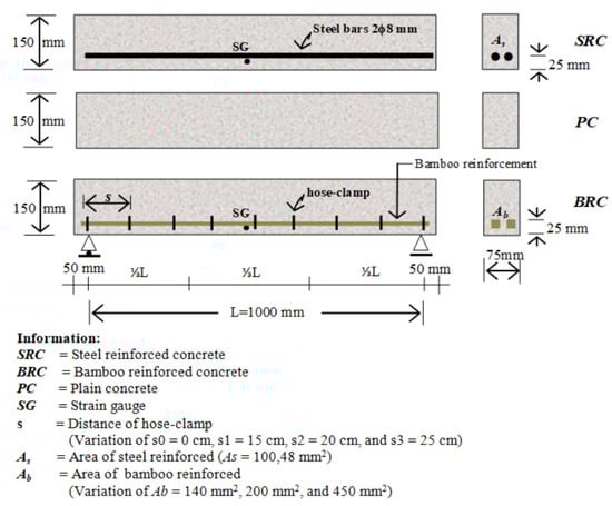 24]. The size of bamboo reinforcement is 15 mm × 15 mm, which is treated first through immersion, drying, and the waterproof coating using Sikadur