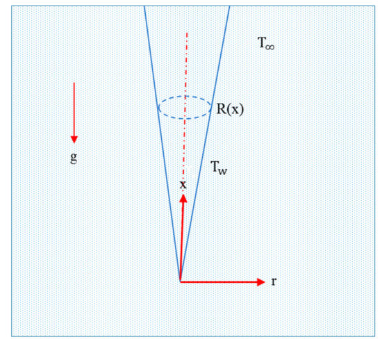 - Yih, K.A. Coupled heat and mass transfer by free convection over a truncated cone in porous media: VWT/VWC or VHF/VMF. Acta Mech. 1999, 137, 83–97. [Google Scholar] [CrossRef]