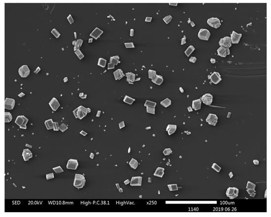Representative scanning electron microscopy (SEM) observation of normal rhombohedral calcite crystals grown on the bottom of the micro-bridge under the experimental conditions but in the absence of any additive.